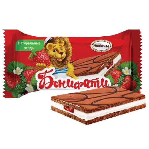 Десерт глазированный, сочетающий нежные бисквитные ломтики, декорированные глазурью, с кремовой начинкой.