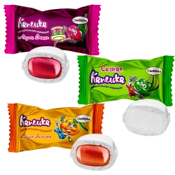 Карамель мягкая жевательная с начинкой со вкусами апельсина, клубники, вишни, лимона
